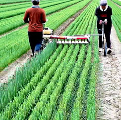 北崎農園は露地とハウス合わせて約10ヘクタールの農園で、年間売り上げの6割を占める七草の生産・加工販売や水稲苗育苗、にんにく栽培、白ネギを生産しています。また自社加工商品『黒にんみつ』を販売しております。