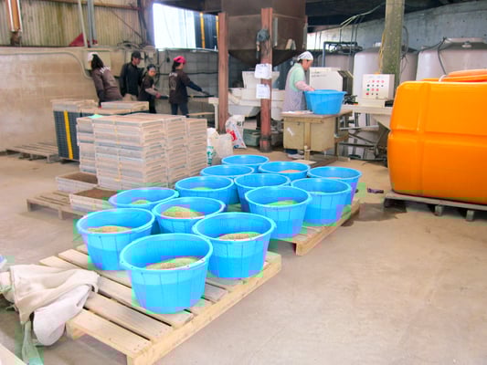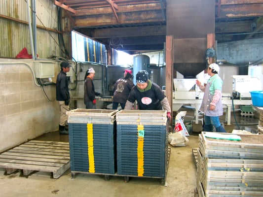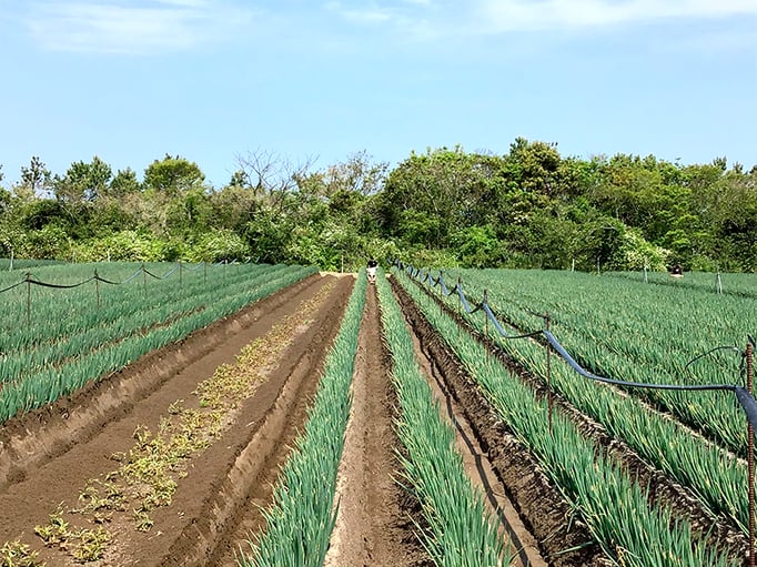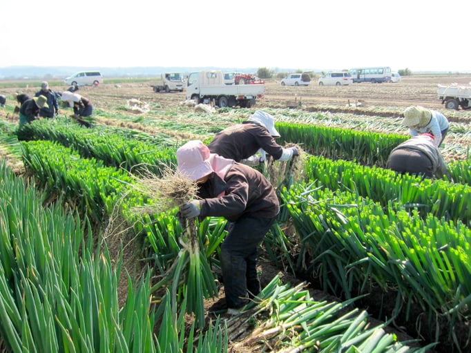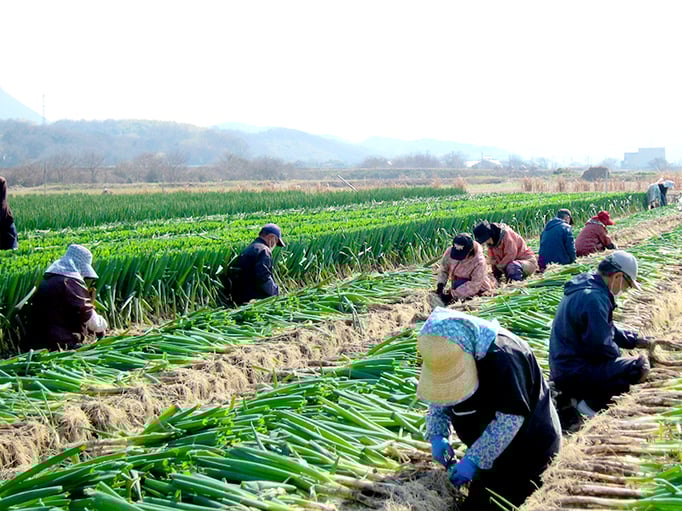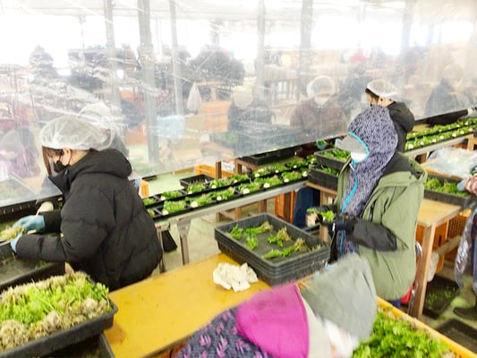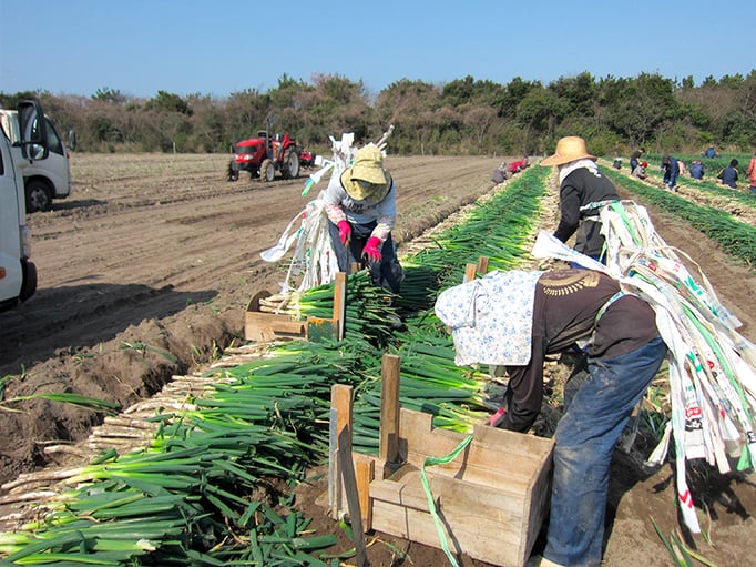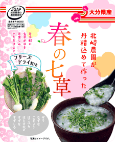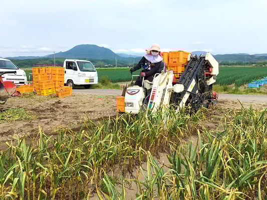 北崎農園は露地とハウス合わせて約10ヘクタールの農園で、年間売り上げの6割を占める七草の生産・加工販売や水稲苗育苗、にんにく栽培、白ネギを生産しています。また自社加工商品『黒にんみつ』を販売しております。